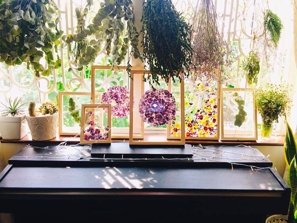 Cô gái 27 tuổi cho biết đã từ bỏ vị trí chủ lực trong đội ngũ digital marketing của một công ty thời trang để theo nghiệp làm tranh hoa. "Vô tình bắt gặp sản phẩm tranh hoa khô trên mạng, mình lập tức bị ấn tượng bởi vẻ đẹp tinh tế của nó. Cho rằng đây sẽ là mặt hàng tiềm năng, mình quyết định tự học cách làm và muốn phát triển lâu dài cùng loại hình kinh doanh mới mẻ này".